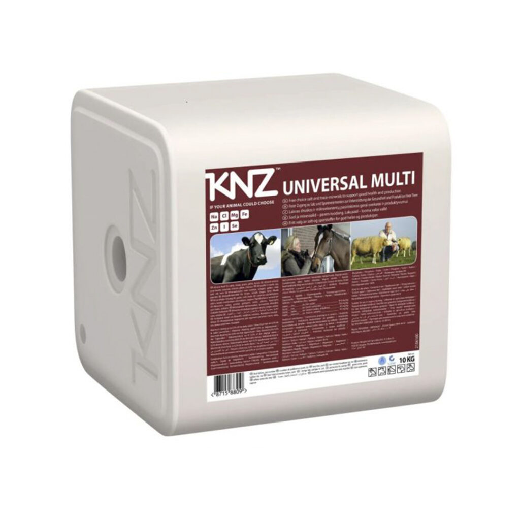 KNZ Universal Multi je mineralni blok (lizalica) sa dodatkom gvožđa, posebno formulisan za domaće životinje koje imaju povećanu potrebu za ovim elementom – bilo zbog intenzivne proizvodnje, brzog rasta, laktacije ili opšte iscrpljenosti organizma.