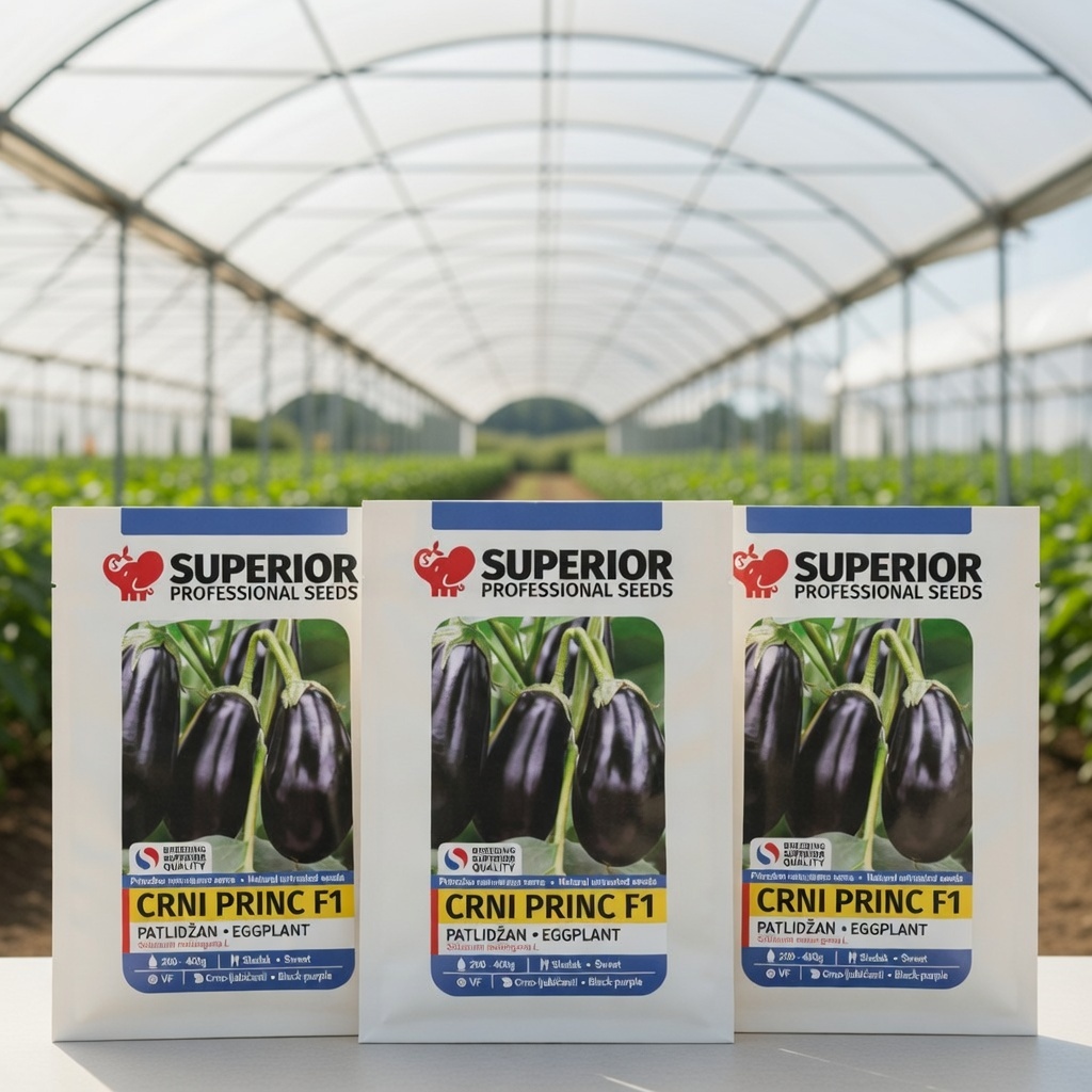Crni Princ F1 je rekorder po broju plodova! Ovaj srednje bujni hibrid daje preko 20 plodova po biljci, prepoznatljivih po svojoj intenzivnoj crno-ljubičastoj boji i obliku suze. Sa plodovima težine 200–400 g i potpuno bez bodlji na drškama, idealan je za laku berbu i profesionalnu upotrebu. Njegovo sočno, belo meso bez gorčine čini ga prvim izborom za grilovanje, sveže salate, ali i kao vrhunski dodatak domaćem ajvaru.